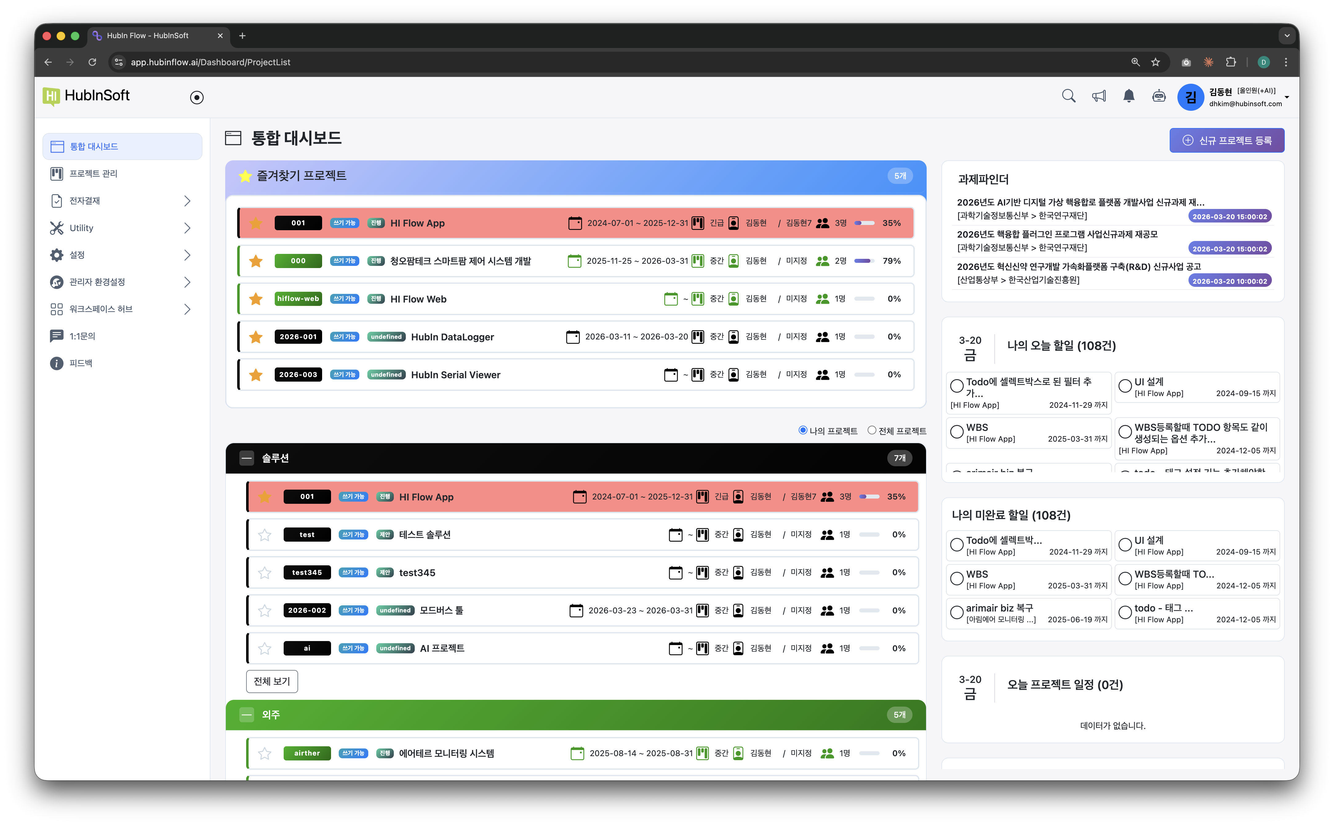 다양한 프로젝트 환경에서 HubIn Flow의 강력한 기능을 경험하세요
